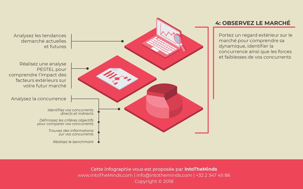 - Menez une étude de la concurrence : listez vos concurrents, définissez des critères de comparaison, complétez grâce à la participation à un salon professionnel ou via des enquêtes « client-mystère », oui, même en B2B.