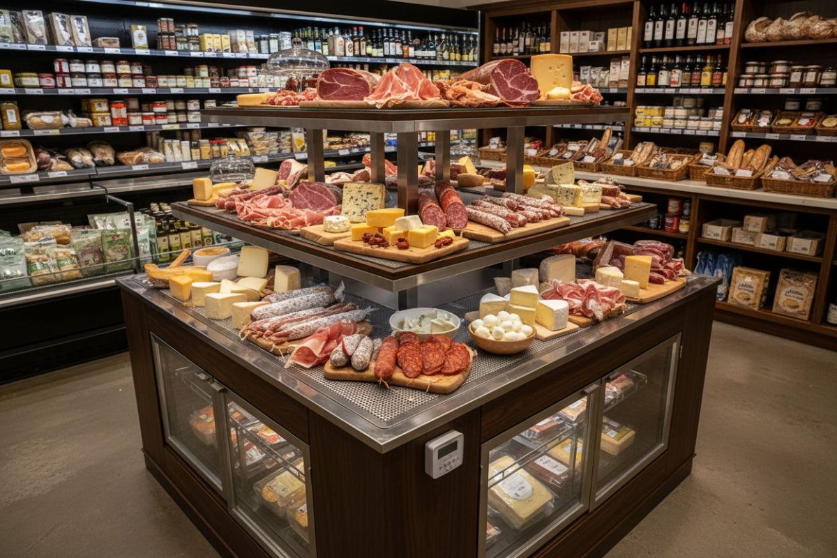 Outre les charcuteries, certains fromages nécessitant une maturation spécifique peuvent également être disposés sur ces présentoirs. L’utilisation d’un espace ventilé est essentielle pour ces produits afin d’éviter tout excès d’humidité.